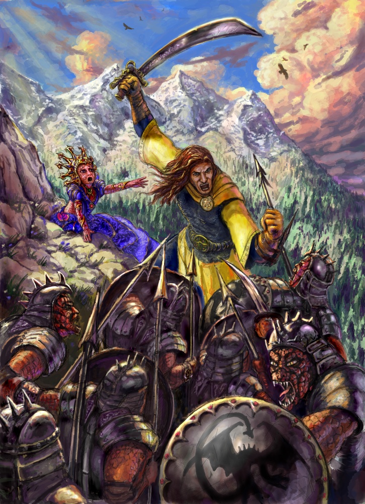 Their swordplay was good for warriors ancient. I felt the Ancient One’s expertise in the way he forced his bonded slaves to fight. But they fought in a style of swordplay far more simple in structure than what a Bretan warrior-monk is taught. I noticed the rudimentary styles of both immediately and waited for the moment to strike. It came after the fifteenth stroke of the sword when one of the warriors lost his footing and stumbled to one side a half step. Like the strike of a viper’s bloody fangs Helshvingar slid in underneath the warrior’s blade and slashed across the warrior’s upper waist.